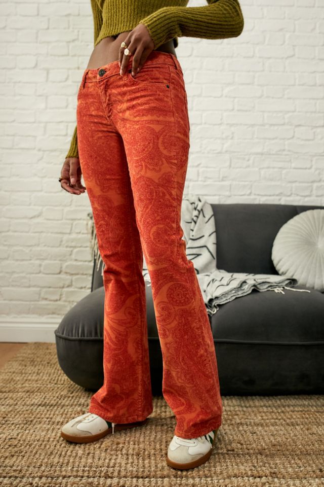 Figure-hugging pant legs end at trendy flaring hems. Large Orange Corduroy Flare Pants American Eagle. This velvet flare corduroy pants have a high waist and side zipper detail.